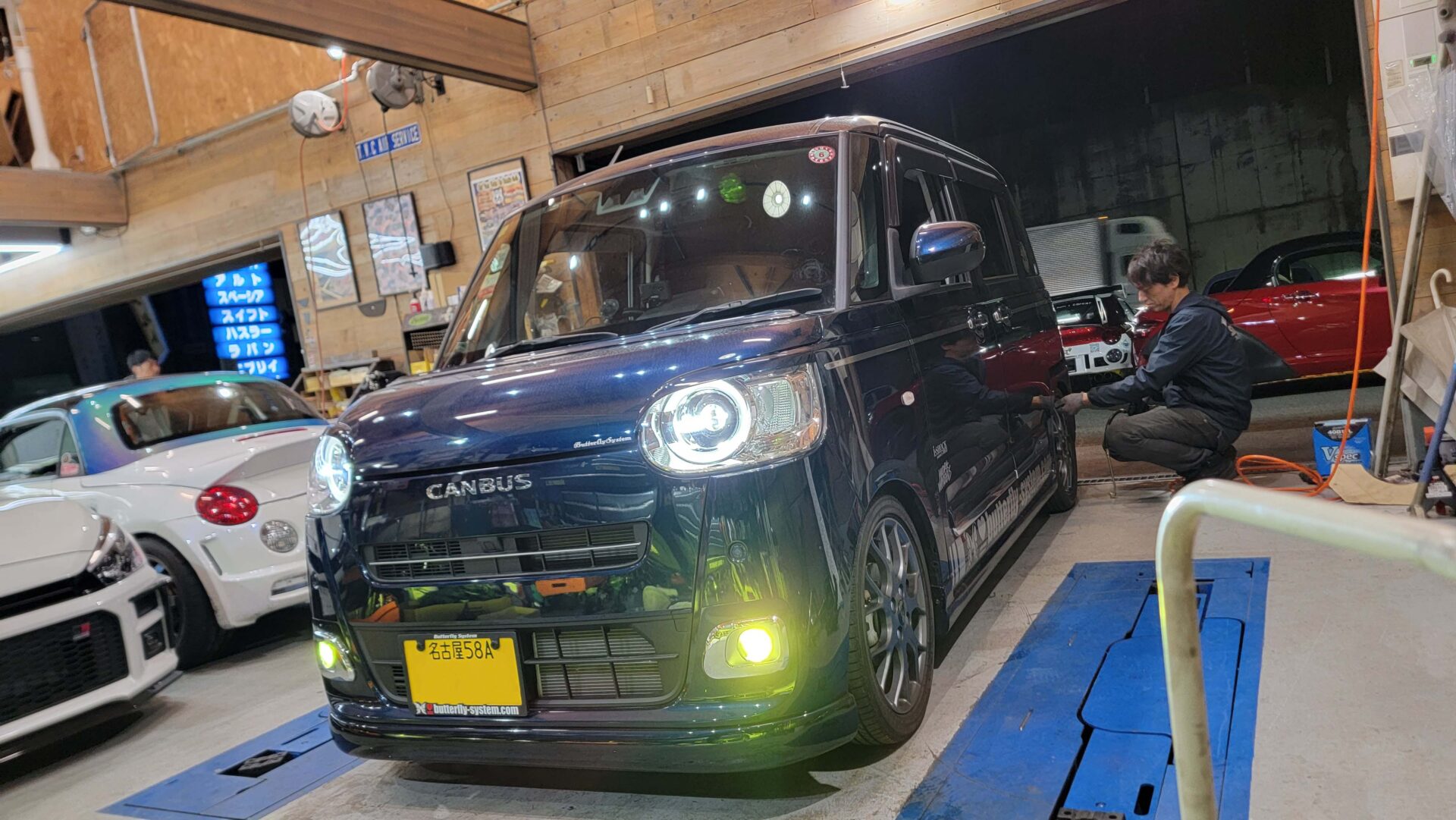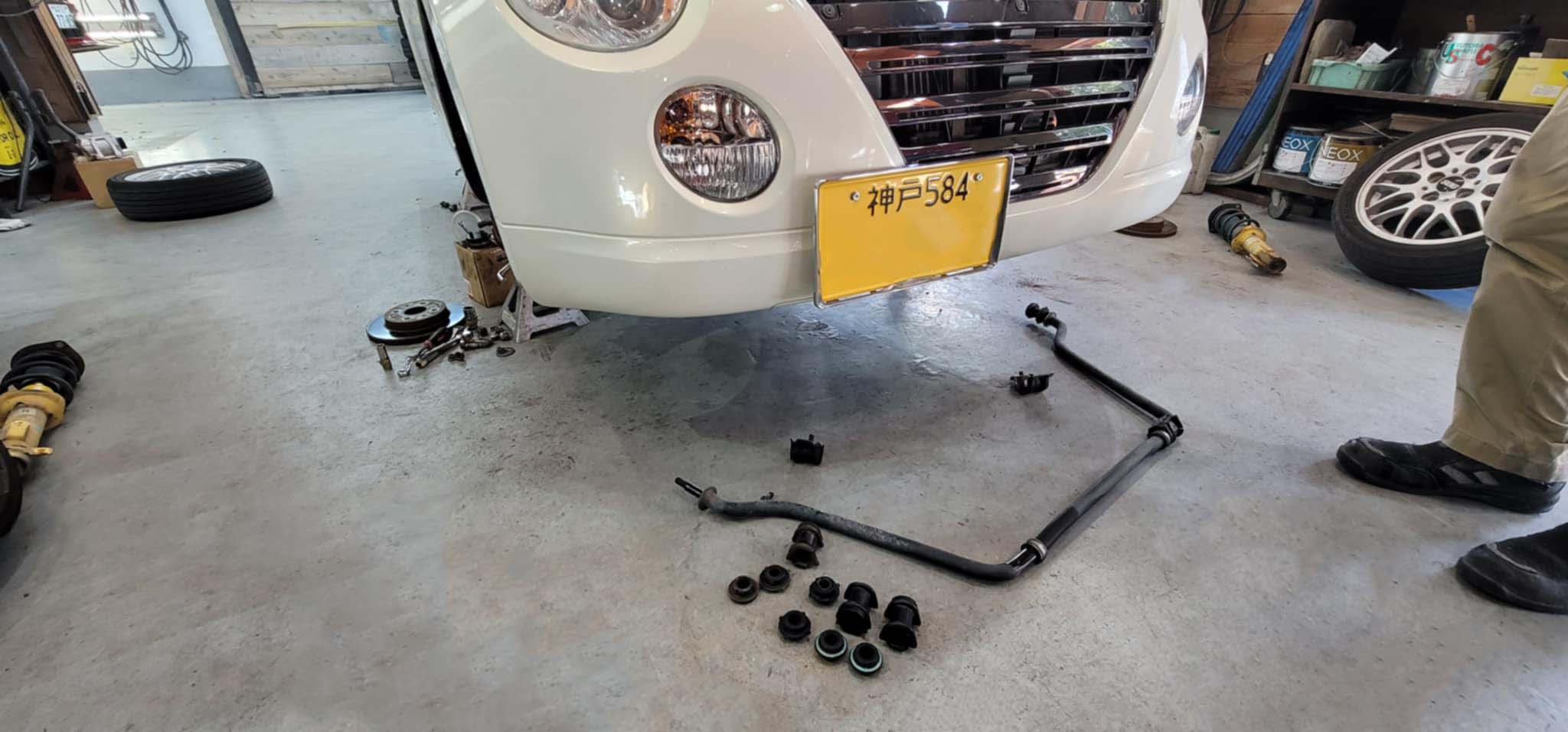 ご近所さんの白880園児は車検入庫。