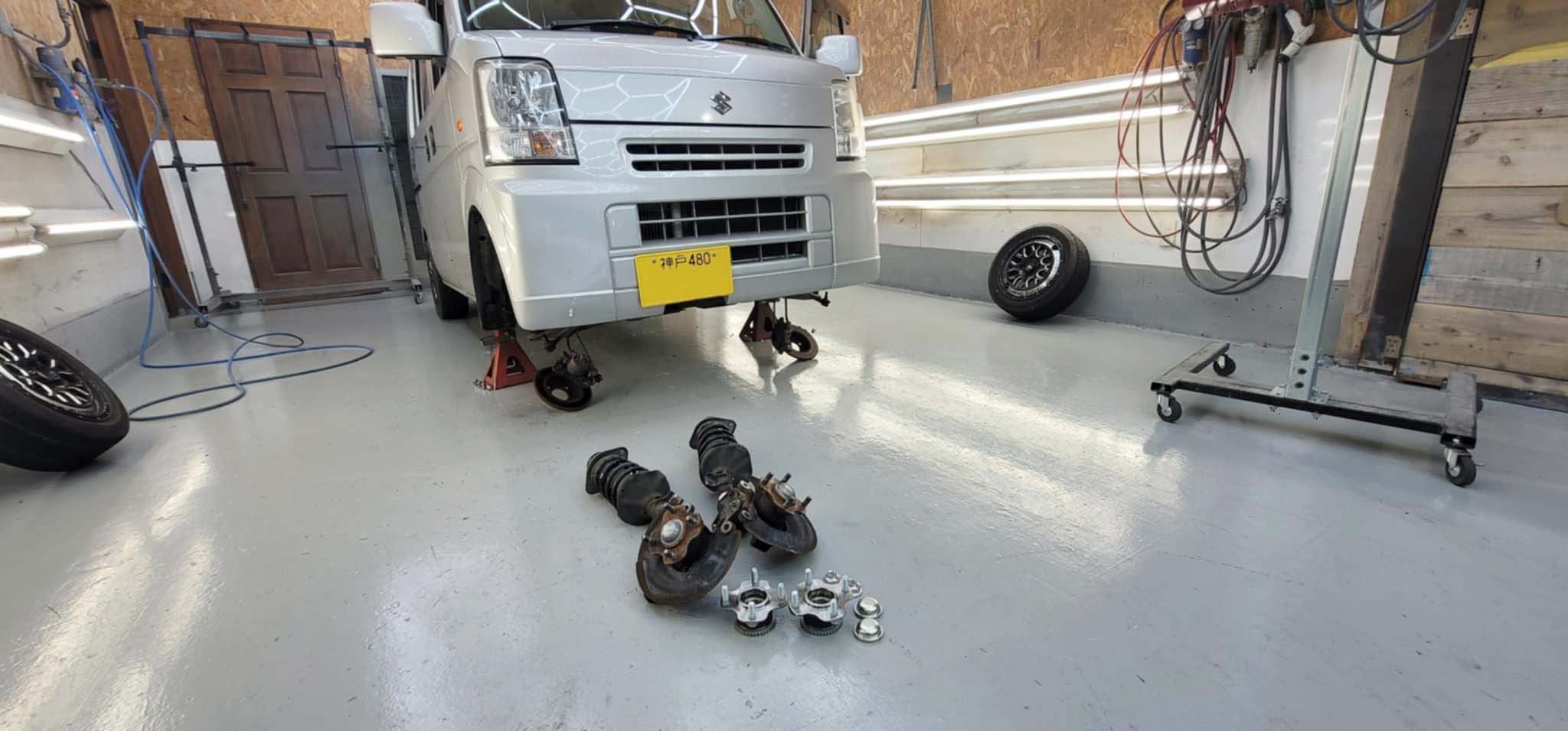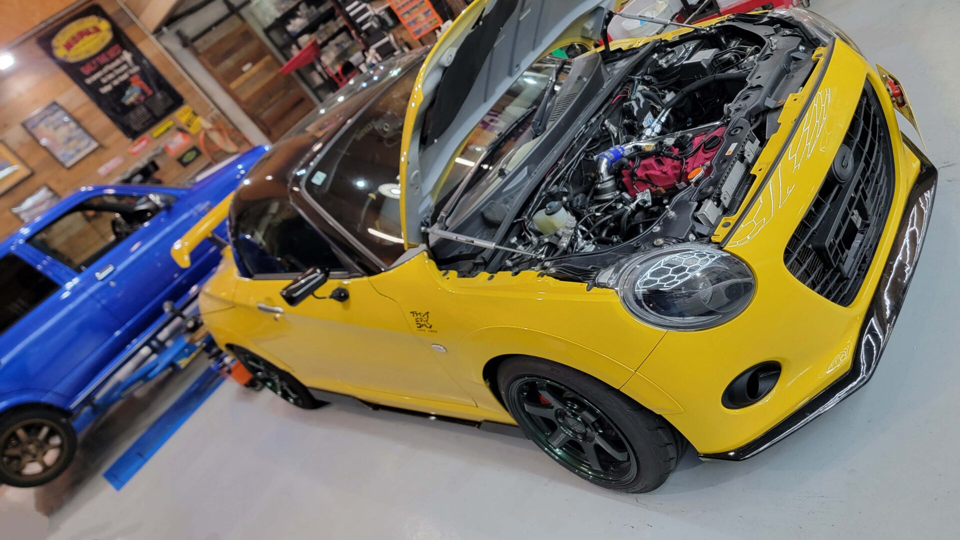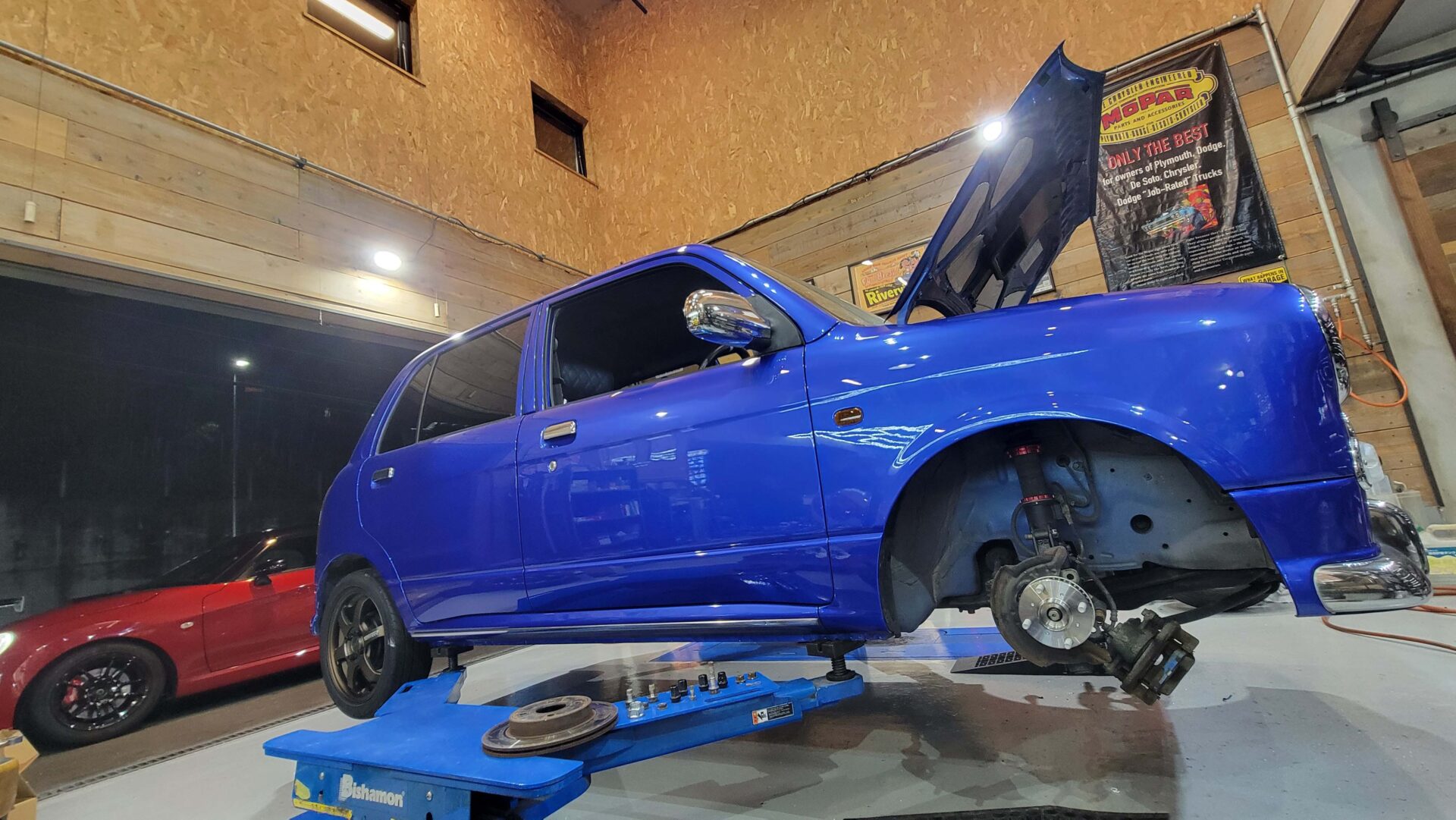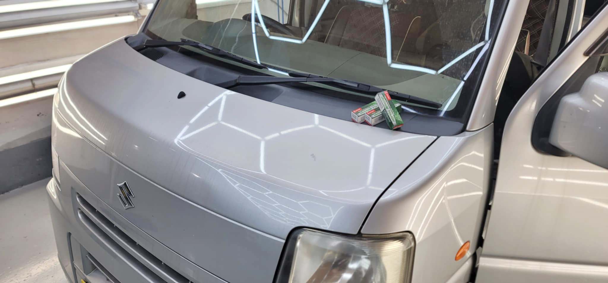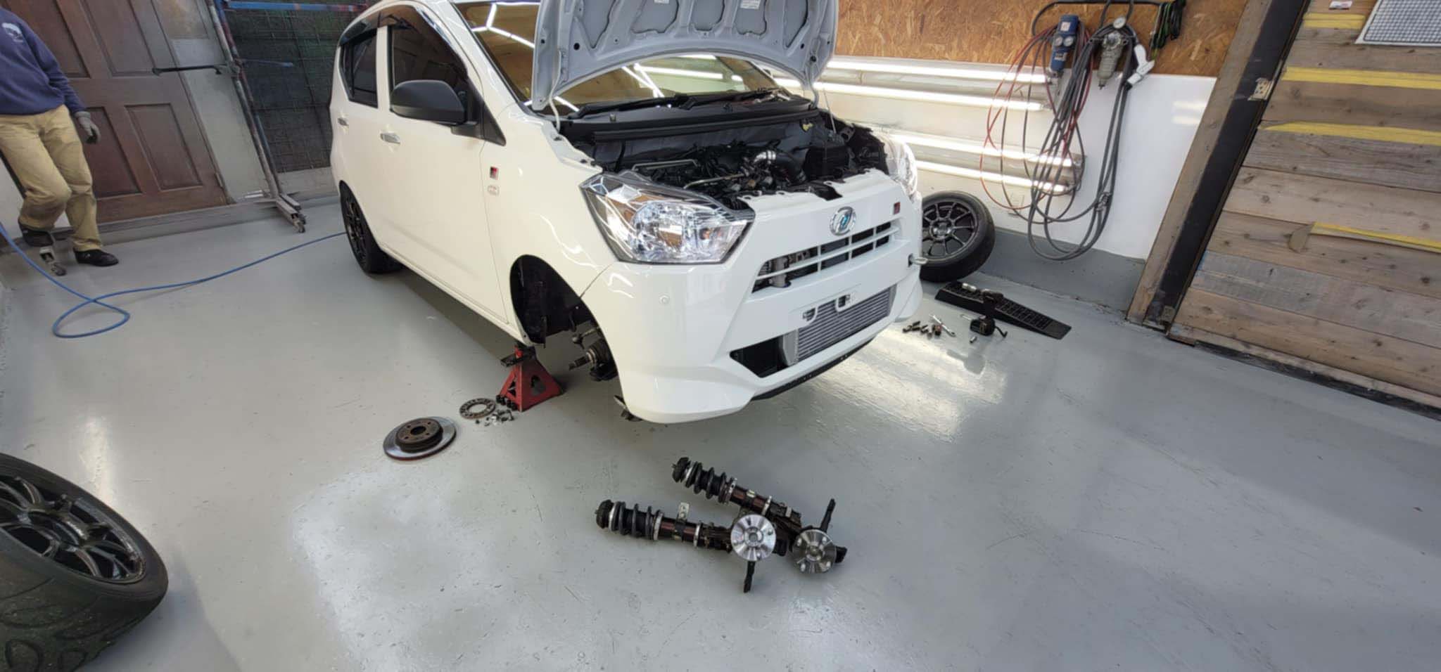 納車準備中の青ミラGINOは車検完了♪