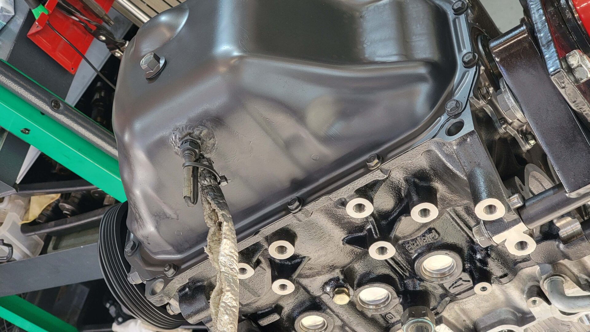 オイルパンに直接1/8PTボス溶接して