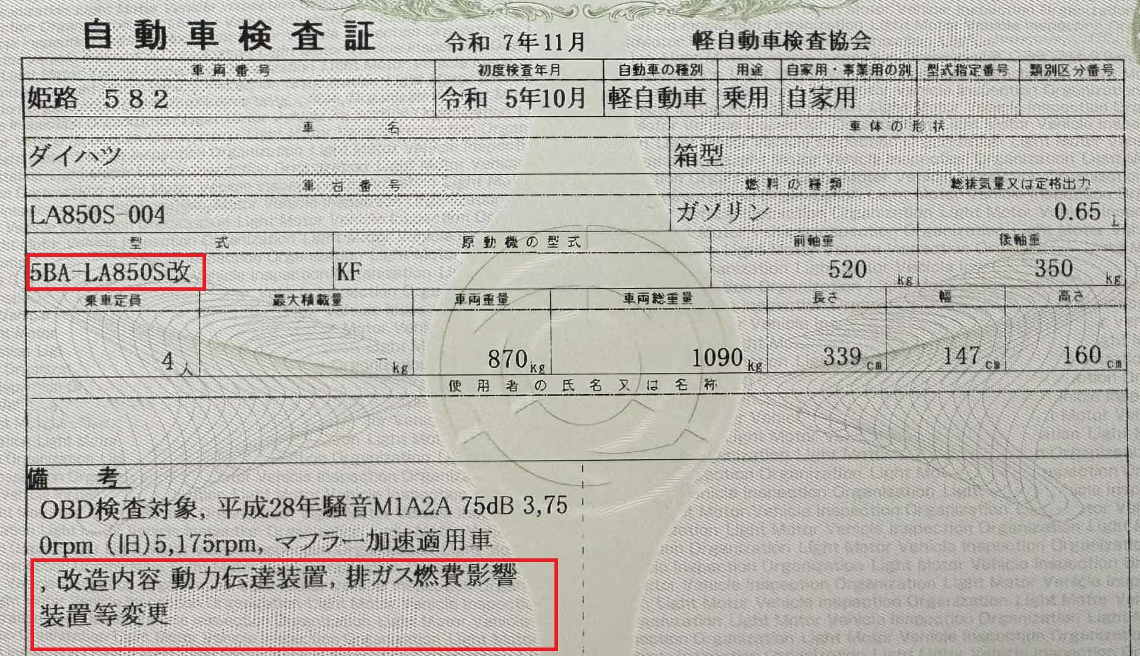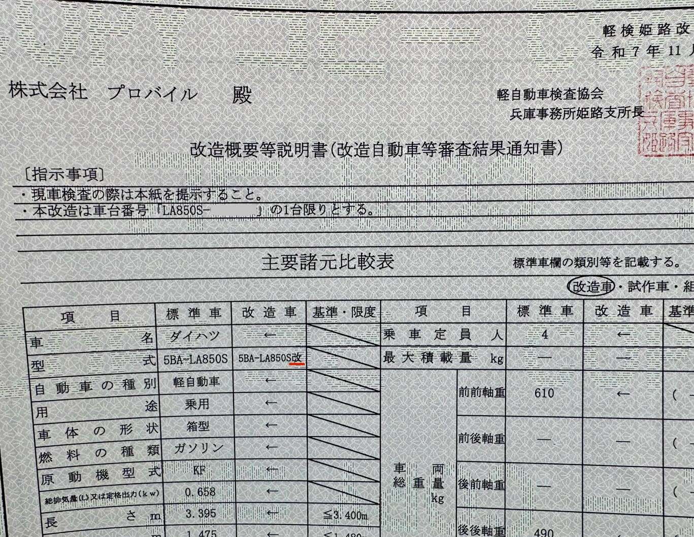 インパネ5速MT化の構変申請決裁おりたので